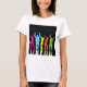 Des danseurs colorés silhouettent contre un arrière - plan noir. Ce design semble vraiment efficace sur ce T-shirt féminin