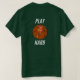 Ce design comprend un joueur de basket en action, vêtu d'un uniforme orange, qui glisse un ballon de basket contre un grand arrière - plan stylisé. L'expression "JOUER DUR" est affichée en haut et en bas du joueur, mettant l'accent sur le dévouement et l'effort dans le sport. Le texte blanc en gras contraste avec l'arrière - plan noir, ce qui fait ressortir le message, tandis que la pose dynamique du joueur ajoute de l'énergie au design. Cela créerait un t-shirt inspirant et motivant, parfait pour les amateurs de basket.