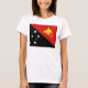 L'avant de ce T-shirt montre hardiment le drapeau de Papuan avec ses étoiles blanches distinctives et oiseau du paradis jaune au-dessus des triangles noires et rouges. Ceci est assorti au fond par une carte attrayante de la Papouasie-Nouvelle-Guinée.