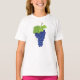 L'air vraiment frais et sain est ce design d'un tas de raisins. Elles ont l'air très sympa et la couleur d'elles est un merveilleux violet. Ce bouquet de raisins est bien accroché avec du feuillage vert au sommet. Cette bande de raisins a l'air super sur ce t-shirt pour filles. Parfait pour vous-même ou comme cadeau