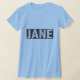 Les grands caractères gras orthographient JANE, avec des titres de livre de Jane Austen fonctionnant le long de l'arrière - plan.