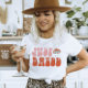 Ce design présente des lettrages rétro funky avec un mignon champignon. Parfait pour votre soirée bachelorette à thème Dazed and Engaged !