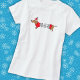 adorable Dachshund de Noël avec HO HO HO mignon dehors. Il porte un mignon petit casquette à pois rouge et blanc et un pull pour se réchauffer.