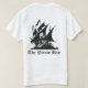 Le logo de la baie de pirate sur une pièce en t blanche avec de logo le dos dessus. A leur logo de bande sur l'avant.