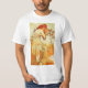 T-shirt d'été d'Alphonse Mucha. Peinture à l'huile sur toile de 1896. Tout au long de sa carrière, l'artiste tchèque Alphonse Mucha peint fréquemment des représentations allégoriques des saisons. Cette version de l'été 1896 est d'un ensemble complet de quatre saisons et présente une belle jeune femme aux cheveux brun clair, penchée sur une vigne au bord de la rivière, en plongeant les pieds dans l'eau. Elle porte une fine robe blanche et de grandes fleurs rouges dans ses cheveux. Un beau cadeau pour les amateurs d'Alphonse Mucha, d'Art nouveau et d'impressions vintages.
