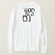 Dieu est le DJ. Petit texte sur l'avant et grand sur le dos. Un T-shirt lourd à manches longues vraiment frais pour ceux qui pense Dieu est le DJ. Portez-le à votre club local et obtenez le DJ et le dancefloor nouveau favori.