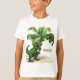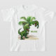 2 Tyrannosaurus Rex. Personnalisez et ajoutez un nom. Texte vert. Avec un palmier.