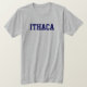 T-shirt d'Ithaca sur le T-shirt gris de Heather avec le lettrage de bleu marine.