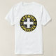 Design circulaire en noir, jaune et blanc avec le drapeau de la Cornouaille et les ensignes du Duc de Cornwall. Avec le texte Cornish American autour.