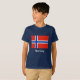 Le drapeau de la Norvège est rouge avec une croix scandinave de bleu d'indigo décrite dans le blanc qui se prolonge aux bords du drapeau ; la partie verticale de la croix est décalée au côté de grue dans le style du Dannebrog, le drapeau du Danemark.