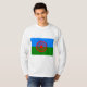 Ce dessin est orné du drapeau romani, qui est le drapeau international du peuple romani. Le drapeau est constitué d'un arrière - plan de bleu et de vert, représentant respectivement les cieux et la terre ; il contient également un chakra rouge à 16 branches, ou carrousel, au centre, qui représente la tradition itinérante du peuple romani et est aussi un hommage au drapeau de l'Inde. Le drapeau a été approuvé par les représentants de diverses communautés roms lors du premier Congrès mondial des Roms (WRC), qui s'est tenu à Orpington en 1971.