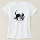 Mignonne t-shirt avec silhouettes de chat et libellé qui dit "On ne peut jamais avoir trop de chats" dans les tons noir et gris.