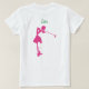 La golfeuse de votre vie adorera l'enfiler avec ce t-shirt de golf. Il a l'expression "Golf Hair Don't Care" dans la typographie de script vert et rose. Le "o" dans le mot golf est un ballon de golf en peluche. Il y a aussi un coeur d'images et un putter. Le dos a un nom dans la typographie de script vert qui peut être édité. Ci-dessous, une image rose d'une golfeuse qui vient de faire un swung dans une balle de golf. Toutes les couleurs de ce design sont modifiables.
