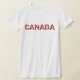 Le T-shirt de cette femme comporte le mot CANADA dans un texte sale. Le dos de la chemise comporte une petite feuille d'érable au dessus par l'encolure. C'est la chemise parfaite pour montrer votre fierté canadienne n'importe quand de l'année, particulièrement le jour du Canada !