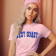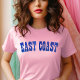 This cute tee has East Coast on it in large bold letters in blue faux glitter.