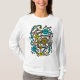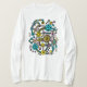 Un T-shirt avec un design abstrait surréaliste et original, tiré à la main, constitué de diverses formes circulaires et carrés reliées à diverses structures de tuyaux ou tubes. Sûr d'être un morceau de conversation et de capter l'imagination comme un diagramme pour une sorte de machine étrange pour contrôler le temps, voyager dans le temps ou parler à des aliens d'autres mondes.