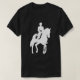 Design élégant noir et blanc avec une silhouette de cheval et cavalier dans une pose dressage. Parfait pour les amateurs de sports équestres.