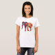 Illustration colorée d'éléphant à motifs abstraits. Le motif d'éléphant a des couleurs violet orange et bleu avec des cercles, des lignes ondulées et d'autres formes qui composent ce design psychédélique à l'orientale.