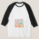 Un design de t-shirt dynamique avec les mots "Elevate, Engage, Enthuse" dans un style ludique et manuscrit. Chaque lettre est d'une couleur différente, brillante, créant une ambiance amusante et énergique. Le design est placé contre un arrière - plan simple, permettant au texte de prendre le centre de la scène.