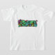 Le nom Elizabeth dans un style funky vitrail dans les couleurs cool de turquoise, vert clair, violet et des morceaux de rouge et jaune chaud. Fleurs et accents cardiaques.
