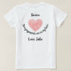 Joli t-shirt avec coeur rouge rose recouvert de motif d'empreintes digitales. '[NOM] Vos empreintes digitales sont sur mon coeur" en écriture en noir. PERSONNALISER avec le nom du destinataire, et qui est l'expéditeur. Idéal pour la Saint Valentin !