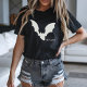 Batsh*t Crazy Women's Halloween T-Shirt features small typography and a large bat across the front. This funny T-shirt makes an excellent gift idea for the Halloween season. Or better yet, add to your collection and get one for yourself!