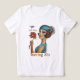 Ce graphique est un art peint à la main inspiré de l'époque Art déco, le style artistique des années 1920-1930. Ça a l'air super sur un T-shirt blanc. Il présente une femme des années 20 vêtue d'une robe bleue laquée et d'un casquette bleu avec des plumes.