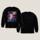 Une illustration numérique montre un gros plan du visage d'une femme, avec des yeux qui semblent remplis d'une énergie cosmique vibrante.