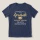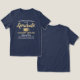 Félicitations au diplômé avec un tee-shirt de remise de diplômes personnalisé pour femmes. Toute la formulation de ce modèle est simple à customiser avec un nom, une année de classe et une école, et un espace supplémentaire optionnel pour une citation inspirante, un dicton motivant ou autre texte. Le design bleu marine, blanc et or comprend un casquette en carton de mortier, une élégante calligraphie de script moderne et une typographie classique élégante. Veuillez noter que l'or est imprimé en couleur et non en métal. Ce T-shirt fait une idée de tenue cool pour une cérémonie de remise des diplômes ou une fête de remise des diplômes. Félicitations au diplômé !
