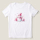 Si vous aimez le design de vacances rose, vous apprécierez ce bonhomme de neige rose en marshmallows ornés d'un casquette rose et d'un écharpe aux bras de perruque. Des flocons de neige roses au hasard s'envolent autour de lui avec des guimauves roses et un petit champignon rose à côté de lui, ainsi qu'un sapin de Noël rose. Un design ludique de t-shirts d'hiver.