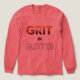 Typographie frappante "Grit in Parties scintillant" avec un dégradé de terre audacieux, des détails de parties scintillant chatoyants, et un accent de renard du désert. Un design parfait pour les femmes fortes, les athlètes et les créateurs qui équilibrent résistance et éclat.