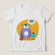 Ce design d'Halloween amusant et fantaisiste présente deux adorables monstres de dessins animés contre un arrière - plan circulaire orange vif. Le plus grand monstre violet a un grand oeil, des cornes turquoises et un nez rayé, debout à côté d'un classique seau à queue-de-sac à lanterne. A côté, un monstre plus petit et turquoise, avec cinq yeux, des ailes et une coiffure excentrique, ajoute au charme ludique. Une bulle de discours au-dessus d'eux dit, "Aie une fabuleuse Halloween !"—avec "BOO" en lettres éffrayantes, dégoulinantes pour une torsion piquante. Le design mêle les personnages mignons à l'humour d'Halloween, ce qui en fait un endroit parfait pour les vêtements de fête ou les décorations qui célèbrent la fête avec une ambiance légère et joyeuse.