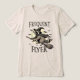 Halloween Raccoon Wizard Fréquent Flyer Funny Modern Tri-Blend Shirt comporte le texte "Fréquent Flyer" dans la typographie de script moderne avec un assistant de raton laveur volant sur un balai avec des chauves-souris volant dans l'arrière - plan. Idéal pour les fêtes et célébrations d'Halloween. Créé par Evco Studio www.zazzle.com/store/evcostudio