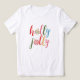 T-shirt de Noël Holly Jolly amusant et Whimsical avec des ornements d'aquarelle dessinés à la main et de jolies lettres multicolores. Parfait pour porter toute la saison. Art original de Leslie Larson.