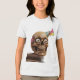 Une image fantaisiste et humoristique d'un crâne surprenant aux yeux de googly surdimensionnés. Elle est ornée d'un tout petit casquette de fête et d'une petite marguerite cachée derrière son "oreille". Le crâne s'assoit sur une pile de livres anciens dans un cadre cosy de bibliothèque, un peu déconcerté par son environnement.