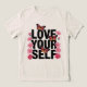 Faites une déclaration avec ce tee-shirt papillon qui vous rappelle de vous aimer - fort et fièrement. Des fleurs roses vives et des papillons monarques gracieux entourent le texte noir audacieux, créant un design dynamique et stimulant. Un cadeau parfait pour les défenseurs de l'amour de soi, les ados et toute personne qui a besoin d'un doux rappel pour briller.