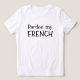 Une chemise drôle et jouer sur les significations pour un séjour en France ou pour avertir les gens à l'avance que vous pouvez occasionnellement utiliser des grossièretés. La couleur du texte peut être modifiée et le texte supplémentaire peut être ajouté au-dessus ou au-dessous des mots "Pardon my French"