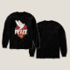 A bold back print T-shirt design featuring a white peace dove flying over red roses with large PEACE typography and a subtle flame texture at the bottom. Perfect for modern streetwear, this high-resolution transparent design is ideal for oversized tees and premium fashion brands.