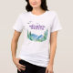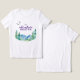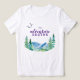 Rocky Mountain L'Aventure Commence Le T-Shirt. Le design comprend un paysage sauvage peint en bleu et vert avec des pins d'aquarelle, des oiseaux et des montagnes.