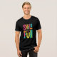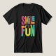 Ce T-shirt noir présente l'expression "Smile It's Fun" en lettres audacieuses et de couleur néon qui s'élèvent contre l'arrière - plan sombre. Le design rayonne de positivité avec une ambiance ludique et énergique, ce qui le rend parfait pour ceux qui aiment répandre la joie. L'effet brillant subtil sur les lettres ajoute une touche moderne au message classique, créant un regard vibrant et attrayant qui se démarque. Idéal pour des sorties décontractées, ce T-shirt allie confort et style, vous assurant de faire une déclaration joyeuse où que vous alliez.