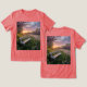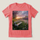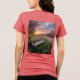 Ce t-shirt est doté d'une photo numérique d'un coucher de soleil printanier animé qui illumine un champ rempli de fleurs sauvages. Un banc en bois se trouve au premier plan, avec une lumière dorée reflétant les fleurs de cerisiers et d'arbustes lilas au milieu. Le soleil couchant projette de longues ombres, mettant en évidence les pétales des fleurs. Le ciel est un mélange de rose, de lavande et d'or, créant un paysage paisible et harmonieux. Le t-shirt est un t-shirt rouge Bella Canvas Tri-Blend.