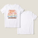 Ce design ludique et dynamique est parfait pour la saison d'automne, en particulier Thanksgiving, avec l'expression accrocheuse et amusante "Turquie, Gravy, haricots et rouleaux, Let Me See That Casserole." Le texte est arrangé dans une mise en page empilée, chaque ligne utilisant une couleur différente d'une palette chaude d'inspiration automnale. Les couleurs vont des oranges et des marrons riches aux roses, bleus et jaunes doux, reflétant l'atmosphère cosy et festive des rassemblements d'automne. La police chic et rétro ajoute une touche nostalgique et fantaisiste au design, tandis que les étincelles qui ressemblent à des étoiles dispersées dans tout le bâtiment rehaussent l'ambiance festive.