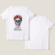 Découvrez l'élégance tranquille de notre design "Tranquil Bloom". Cette pièce captivante présente un crâne, réinventé dans un état de contemplation sereine, couronné d'un étonnant éventail de fleurs roses, jaunes et oranges parmi des feuilles verts et verdoyants. C'est une puissante déclaration artistique sur la découverte de la beauté et de la vie même dans les endroits les plus inattendus, offrant un mélange unique de réflexion et de charme radieux. Portez un morceau qui parle à l'âme.