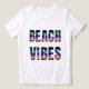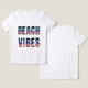 Ce t-shirt féminin est montré en blanc avec un imprimé de vibes de plage mignonnes. Customisez cet objet ou achetez tel quel.
