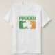 Un T-shirt comportant un shamrock blanc, vert, et orange irlandais affligé avec le nom de famille énervent.