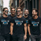 T-shirt drôle de fête de bachelor bleu, noir et blanc pour un marié et ses garçons d'honneur. Prenez-en un pour chaque membre de votre groupe d'amis.