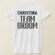 Soyez un front uni pour les événements de votre mariage, de la fête de fiançailles à l'enterrement de vie de garçon et plus encore. Ces chemises montreront votre amour et votre soutien pour le futur marié. Ce design présente une typographie de police sans empattement gras personnalisée avec la citation "Team Groom", ainsi qu'un monogramme et "Mère du marié" sur le devant. Ce sera un moyen cool, amusant et tendance de montrer votre fierté lorsque vous êtes avec le marié !