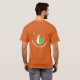 Escargot "Peace out" avec police blanche sur un t-shirt orange et "Peace to the World" avec police blanche sur le dos du t-shirt orange.