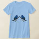 Ce T-shirt comporte deux étamines d'indigo masculines spectaculaires étées perché sur des branches. Cet oiseau minuscule n'est pas souvent vu. Il est timide et tend à éviter des humains. Son habitat est des terres cultivables, des secteurs de brosse, et des régions boisées ouvertes. Il a des plumes bleues iridescentes incroyablement brillantes et une chanson très douce. La femelle est mignonne mais une couleur brune mate.