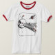 Abstrait tableau de doodle de l'explorateur de l'espace imprimé sur un t-shirt blanc aux accents rouges.